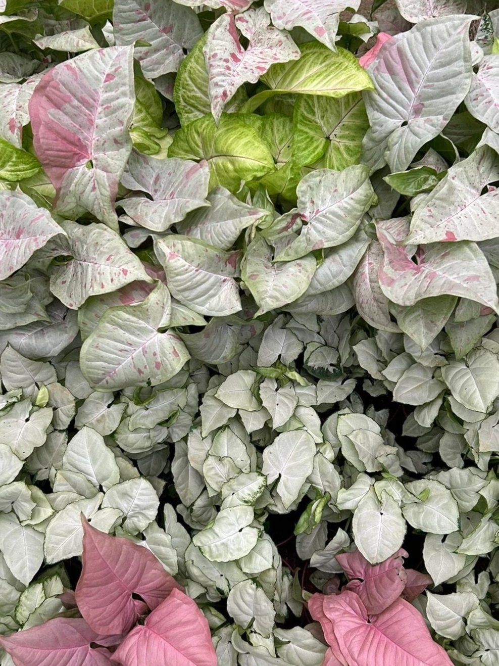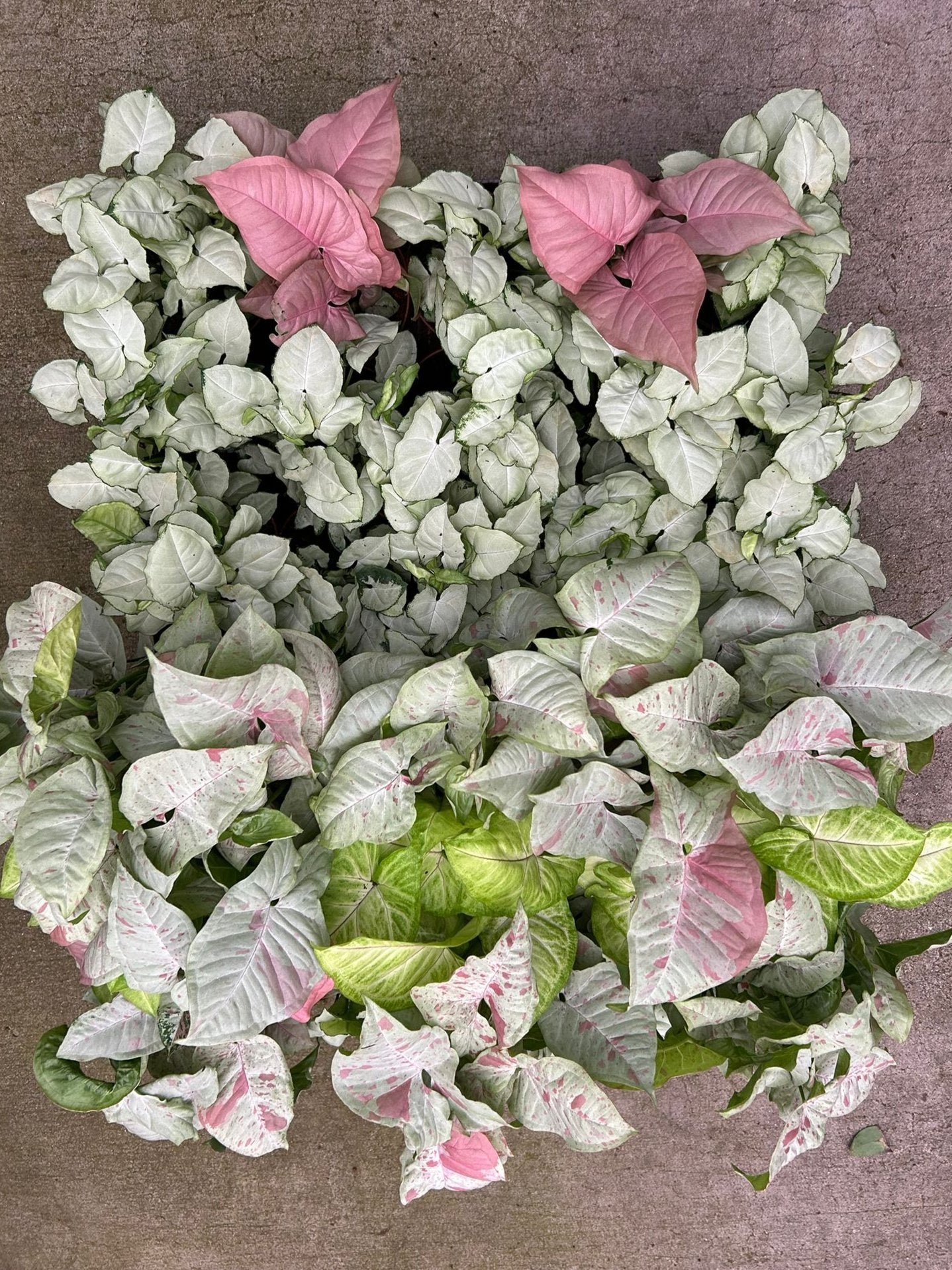 This Syngonium Assorted Plants collection is ideal for wholesale buyers looking to offer their customers a variety of popular, easy-care houseplants. This grower's choice assortment features favorite Syngonium varieties like White Butterfly, Golden Allusion, Confettii, and Neon Pink. These plants are highly sought after for their appeal and low-maintenance nature.