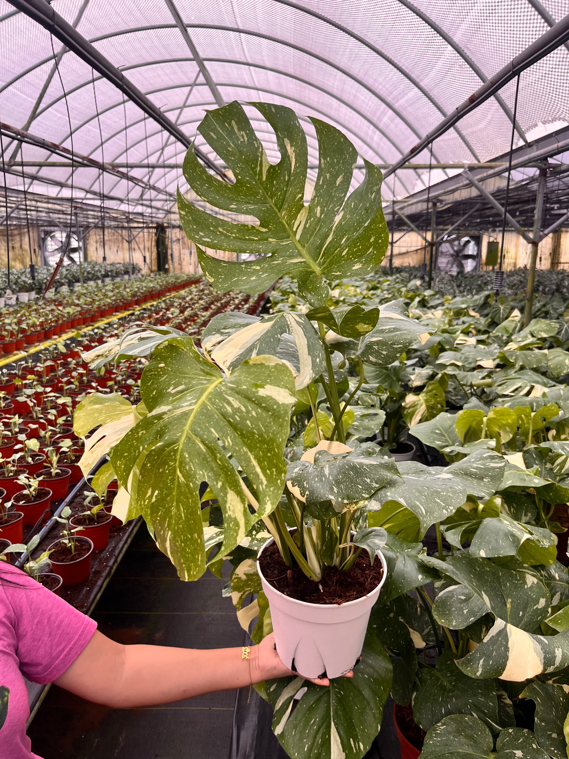 The Monstera Thai Constellation is celebrated for its stunning, variegated leaves adorned with creamy-white patterns that resemble stars against a rich green backdrop. This plant prefers bright, indirect light to maintain its vibrant variegation and should be kept away from direct sunlight to prevent leaf burn. Watering should be done when the top inch of soil feels dry, ensuring that the soil remains well-draining to prevent root rot. High humidity is beneficial for this tropical plant, so consider misting it regularly or placing it in a humid environment. With proper care, the Monstera Thai Constellation can thrive and become a striking focal point in any indoor space.